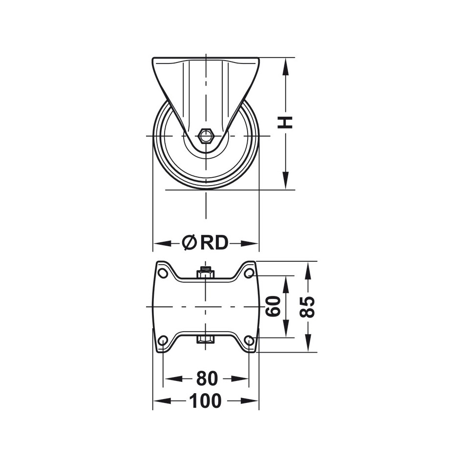 Placa para atornillar, altura de montaje H: 102 mm, capacidad de carga: 200 kg, Ø rueda: 80 mm, ancho de rueda: 33 mm